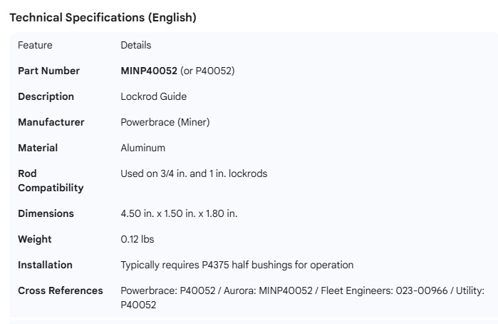 MINER DOOR ROD GUIDE