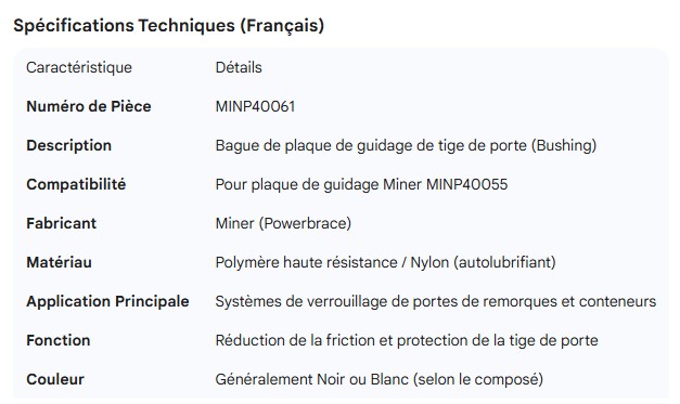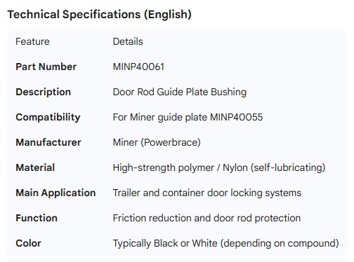 MINER DOOR ROD GUIDE PLATE BUSHING FOR MINP40055