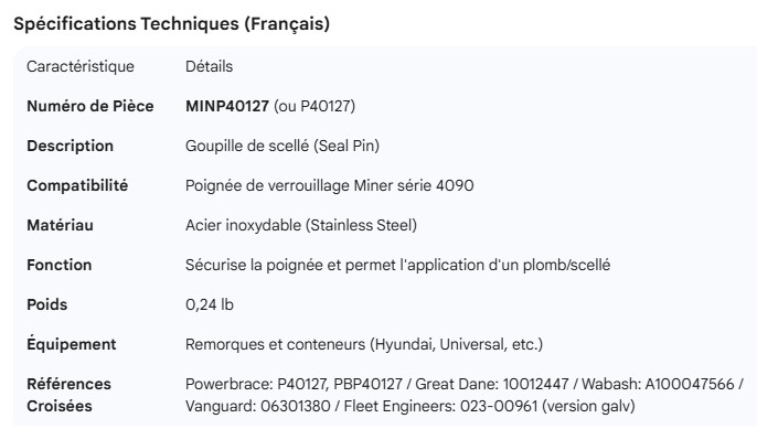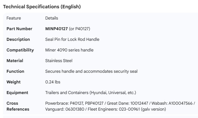 MINER SEAL PIN SS FOR 4090 HANDLE