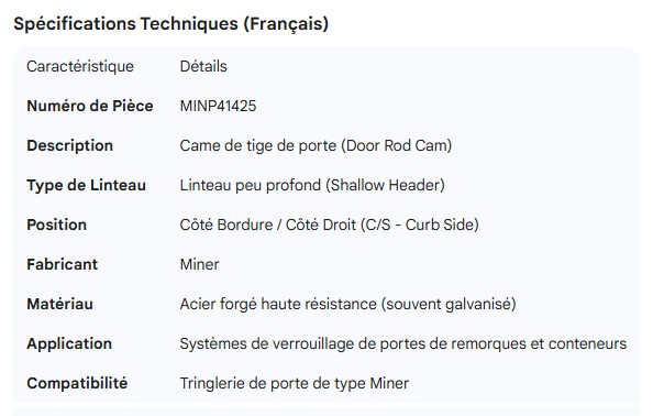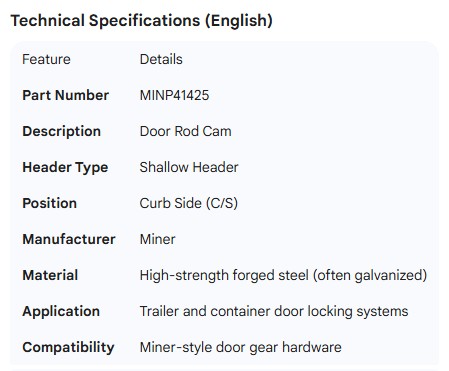 MINER DOOR ROD CAM - SHALLOW HEADER C/S