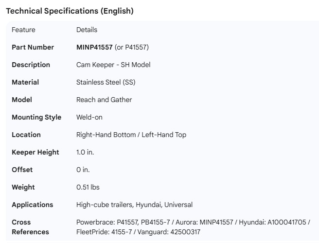 MINER DOOR ROD CAM KEEPER SS