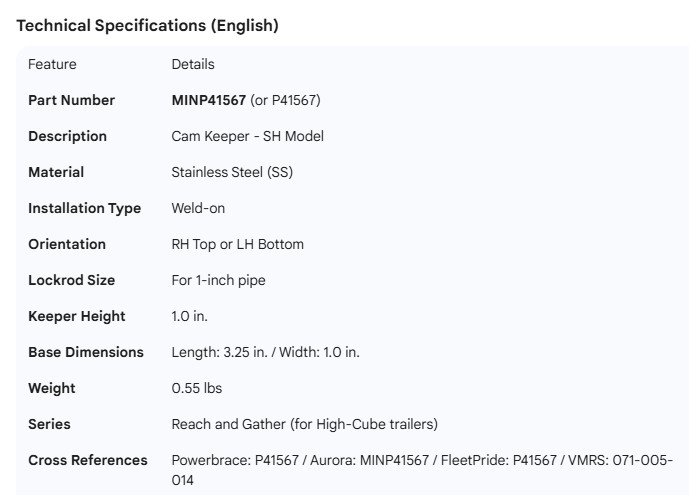 MINER DOOR ROD CAM KEEPER SS