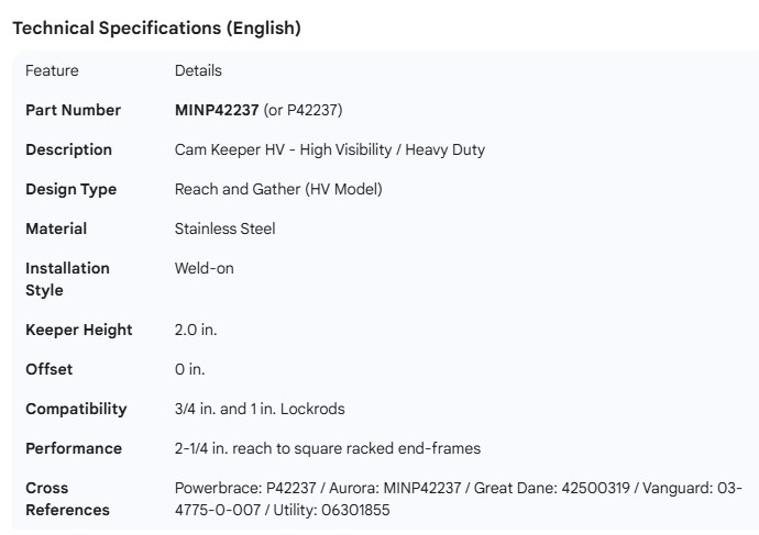 MINER DOOR ROD CAM KEEPER KEEPER HV SS