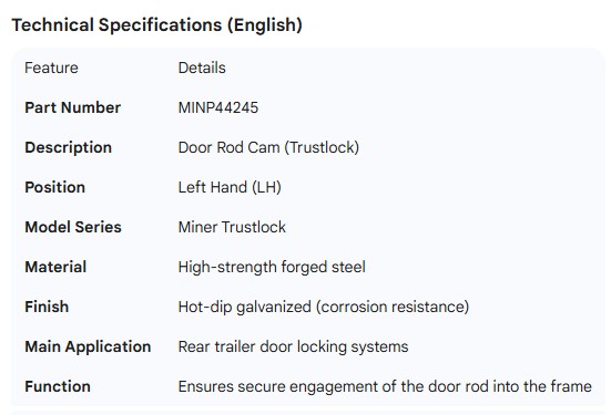 MINER DOOR ROD CAM TRUSTLOCK LH