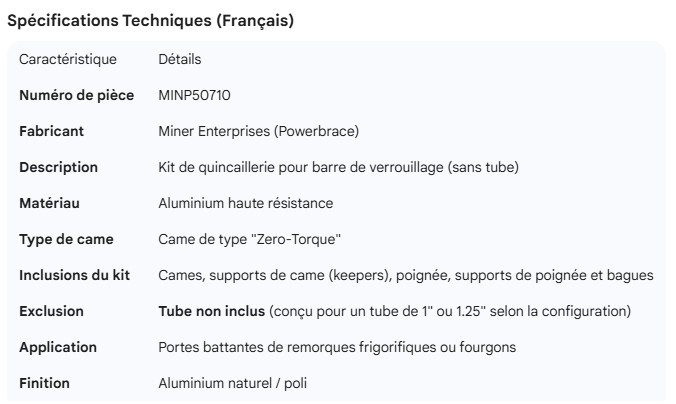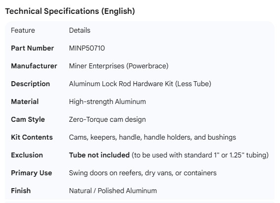 MINER ALUMINUM LOCK ROD KIT LESS TUBE