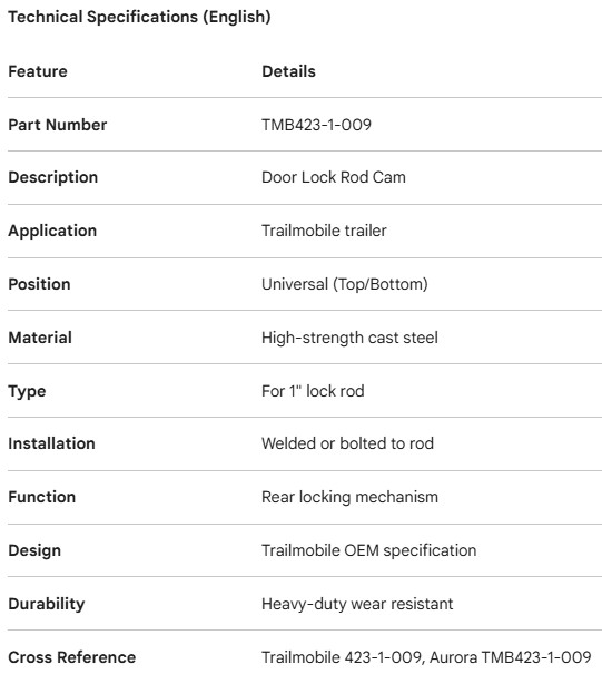 TRAILMOBILE DOOR ROD CAM