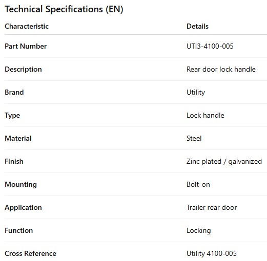 UTILITY HINGE LOCK HANDLE REAR DOOR
