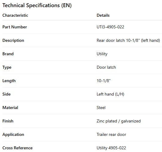 UTILITY REAR DOOR LATCH 10-1/8 LG L/H