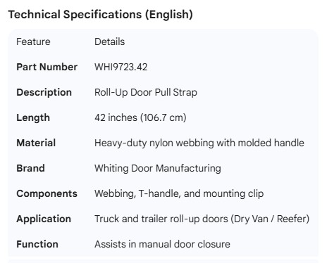 WHITING ROLL-UP DOOR PULL STRAP 42"
