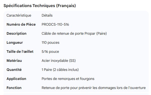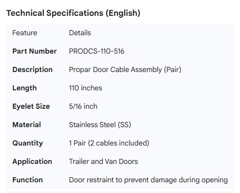 PROPAR DOOR CABLE SS 110", 5/16" EYE (1 PAIR = 2 CABLES)