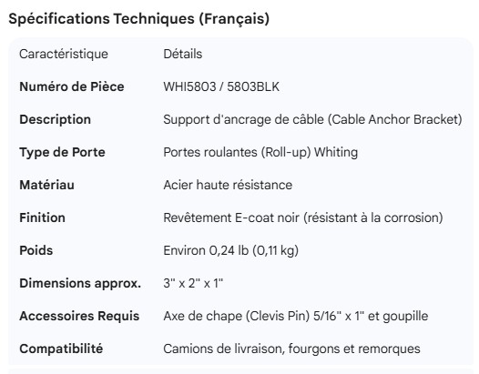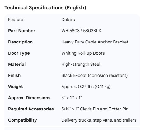 WHITING ROLL-UP DOOR CABLE ANCHOR