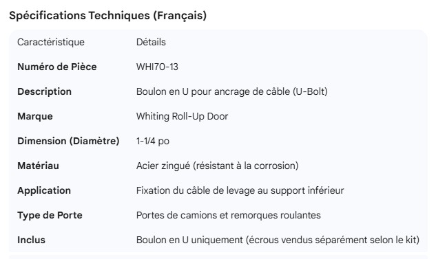 WHITING ROLL-UP DOOR CABLE ANCHOR U-BOLT 1-1/4