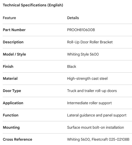PROPAR ROLL-UP DOOR ROLLER BRACKET WHITING STYLE 5600