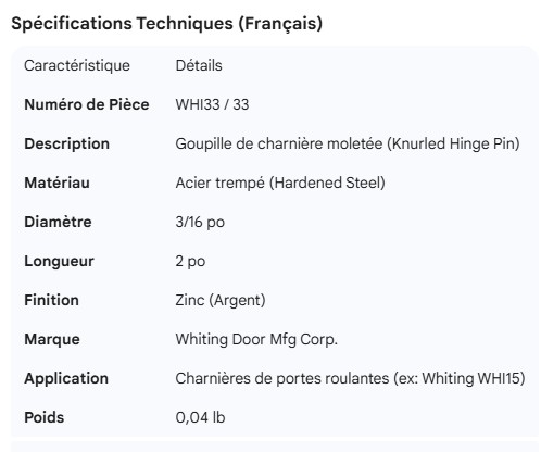 WHITING ROLL-UP DOOR KNURLED HINGE PIN