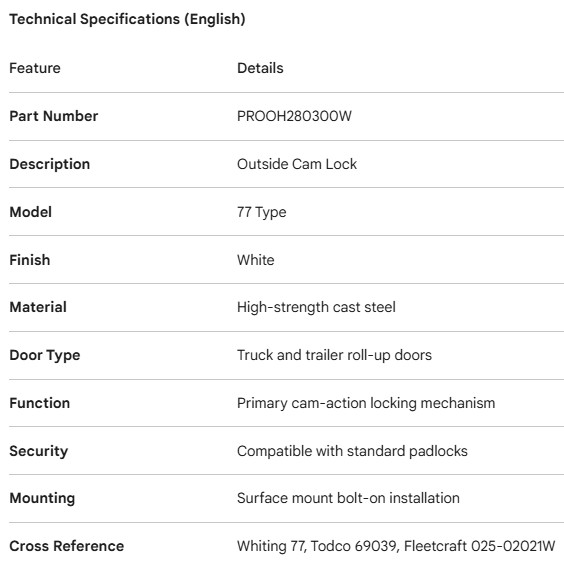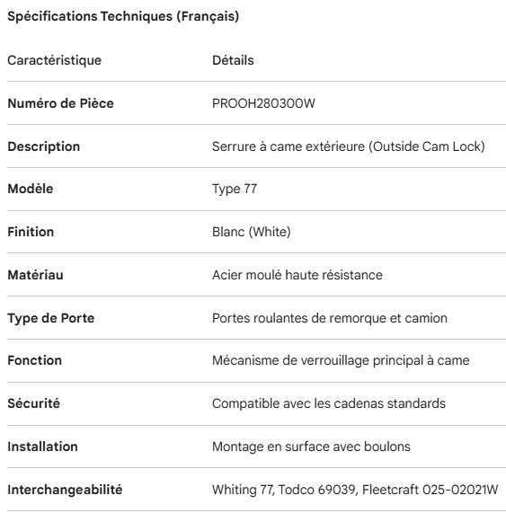 PROPAR ROLL-UP DOOR OUTSIDE CAM LOCK WHITE 77