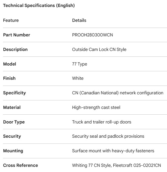 PROPAR ROLL-UP DOOR OUTSIDE CAM LOCK WHITE 77
