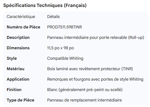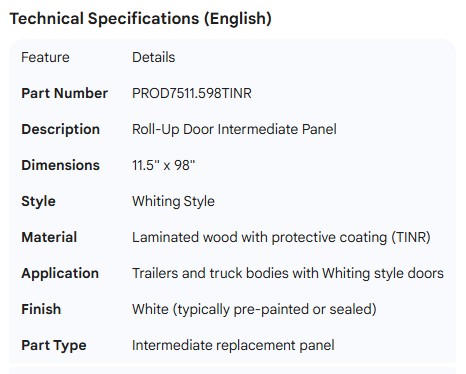 PROPAR ROLL-UP DOOR INTER PANEL 11.5" X 98" WHITING STYLE