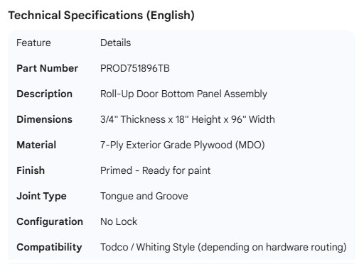 PROPAR ROLL-UP DOOR PANEL ASSY 3/4 18 X 96, NO LOCK PRIMED