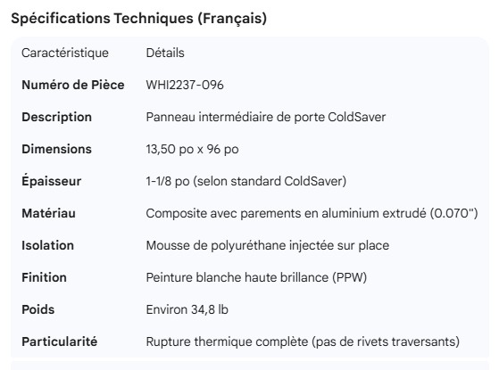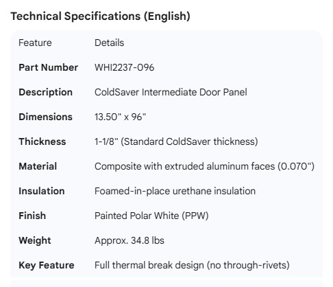 WHITING COLDSAVER DOOR INTER PANEL 13.50" X 96" PPW