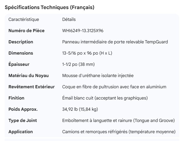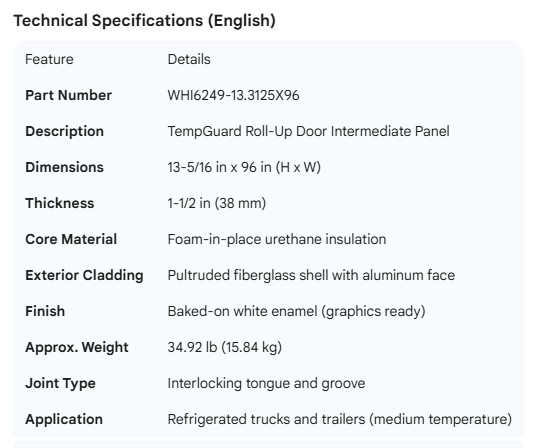 WHITING TEMPGUARD ROLL-UP DOOR INTER PANEL 13-5/16" X 96"