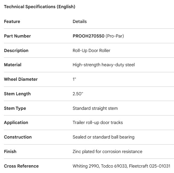 PROPAR ROLL-UP DOOR ROLLER 1" - 2.50" STEEL