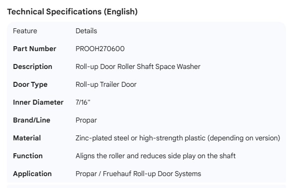PROPAR ROLL-UP DOOR ROLLER SHAFT SPACE WASHER 7/16"