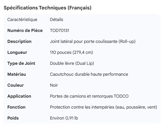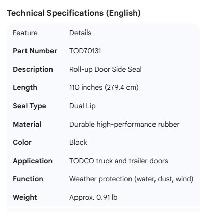 TODCO ROLL-UP DOOR SIDE SEAL 110"