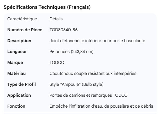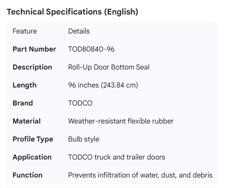 TODCO ROLL-UP DOOR BOTTOM SEAL 96"