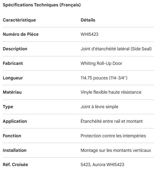 WHITING ROLL-UP DOOR SIDE SEAL 114-3/4"