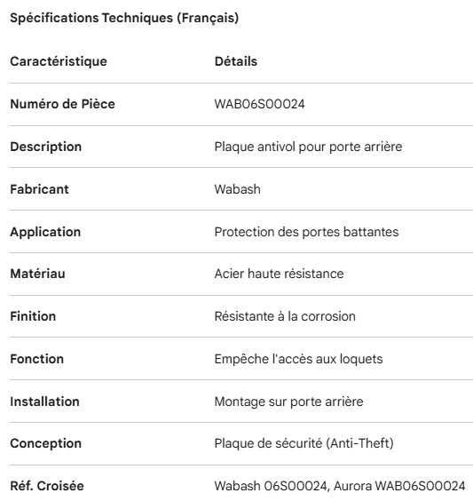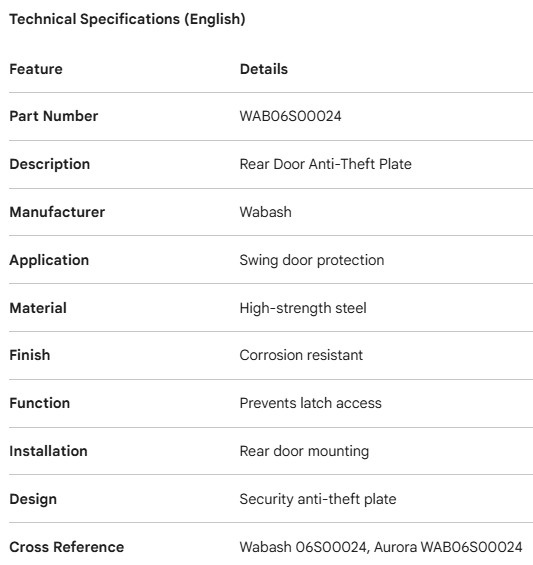 WABASH REAR DOOR ANTI-THEFT PLATE