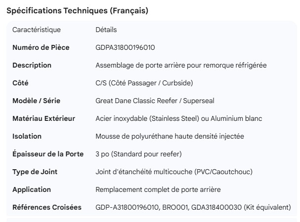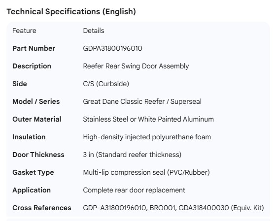 GREAT-DANE REEFER DOOR ASSEMBLY C/S (BRO001)