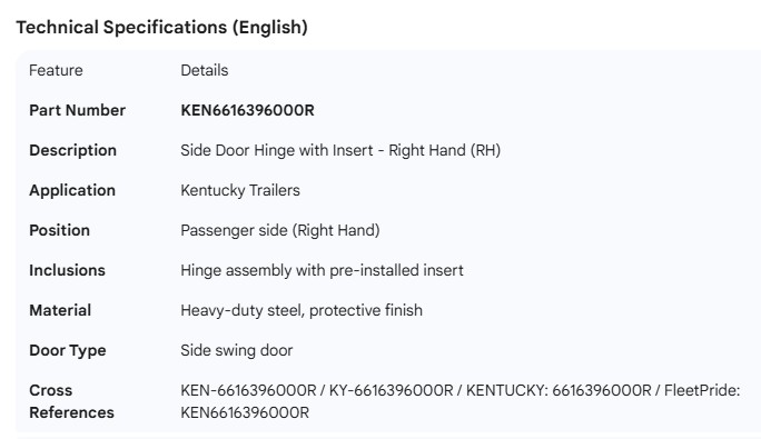KENTUCKY HINGE WITH INSERT SIDE DOOR RH