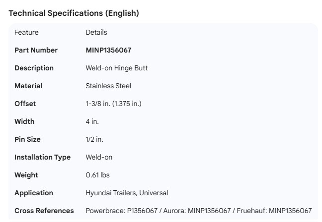 MINER HINGE BUTT SS 1.375" OFFSET 4"