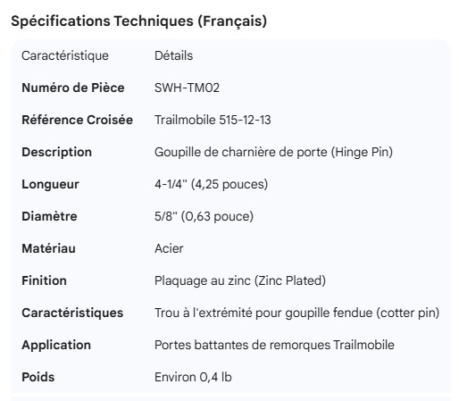 TRAILMOBILE HINGE PIN 515-12-13