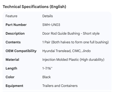 HYUNDAI DOOR ROD GUIDE BUSHING SHORT CIMC (1 PAIR)