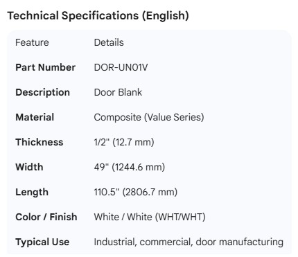 DOOR BLANK 1/2"X49"X110.5" WHT/WHT COMPOSITE VALUE