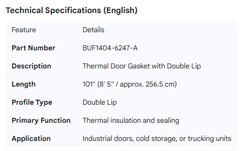 DOOR GASKET THERMAL WITH DOUBLE LIP 101" (8'5")