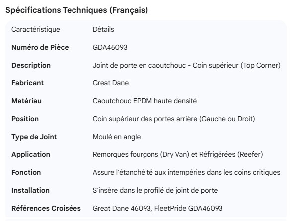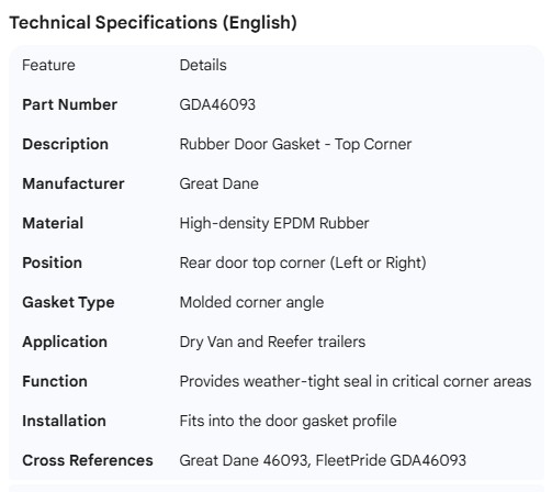 GREAT-DANE RUBBER DOOR GASKET TOP CORNER