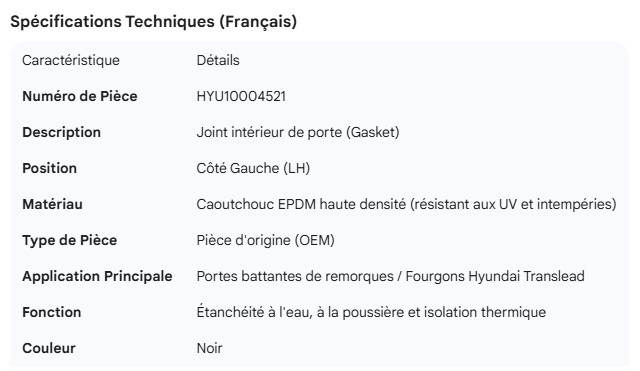HYUNDAI DOOR INNER GASKET LH