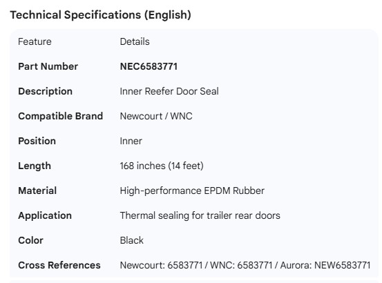 NEWCOURT WNC REEFER SEAL INNER 168"