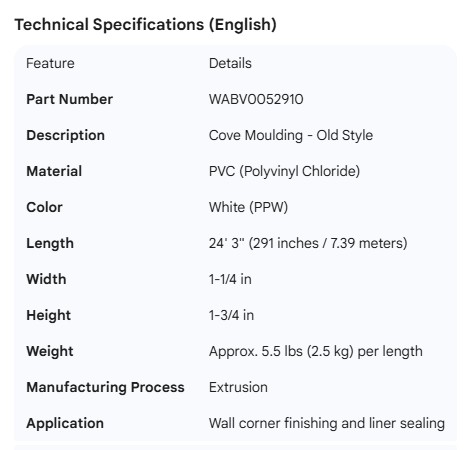 WABASH COVE MOULDING OLD STYLE PVC WHITE 24'3"
