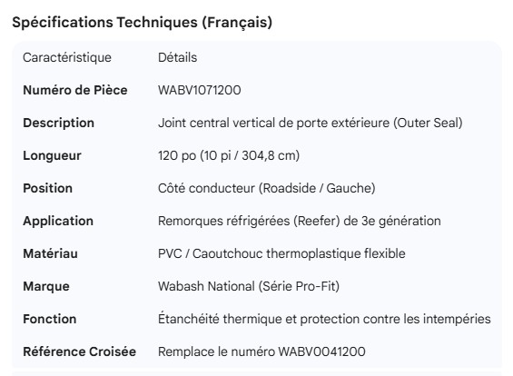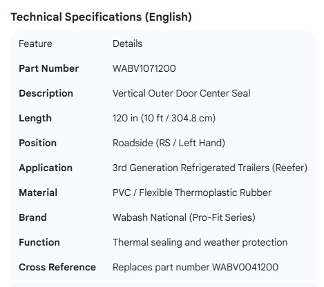 WABASH OUTER REEFER DOOR VERTICAL CENTER SEAL 120"
