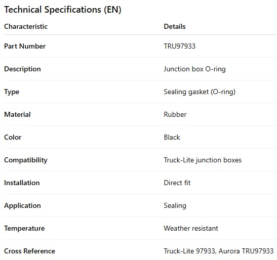 TRUCK LITE JUNCTION BOX O-RING