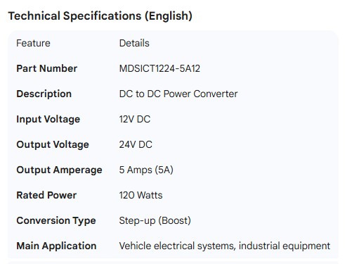 POWER CONVERTER DC 12V TO 24V 5AMP