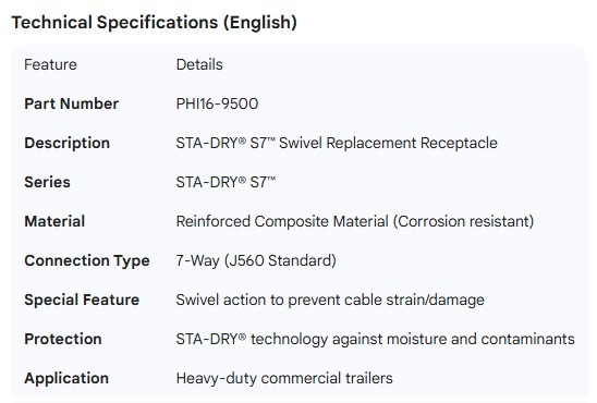 PHILLIPS SWIVEL REPLACEMENT RECEPTACLE STA-DRY S7 (MOD REQ)