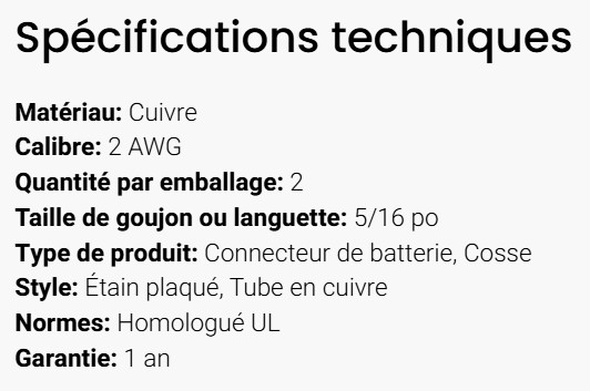 GROTE BATTERY CONNECTOR COPPER LUG 2 GA X 5/16
