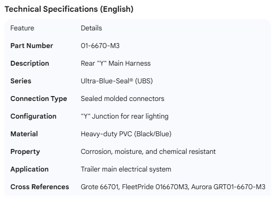 GROTE REAR " Y " HARNESS