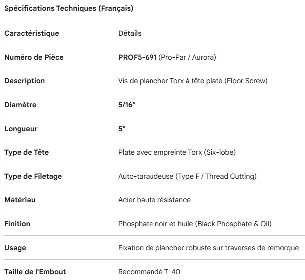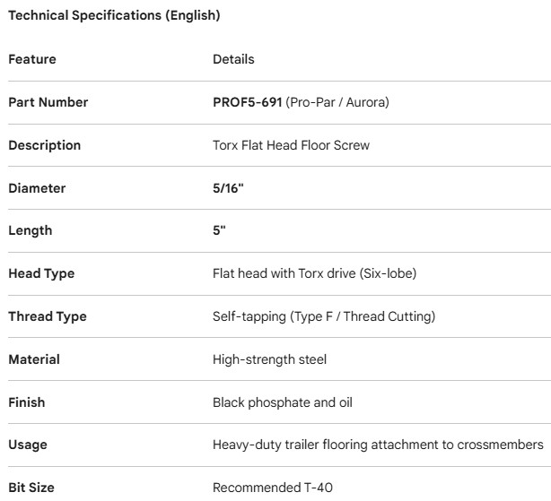 TORX FLOOR SCREW 5/16 X 5