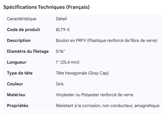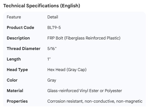 FRP BOLT 5/16" X 1" GRAY CAP