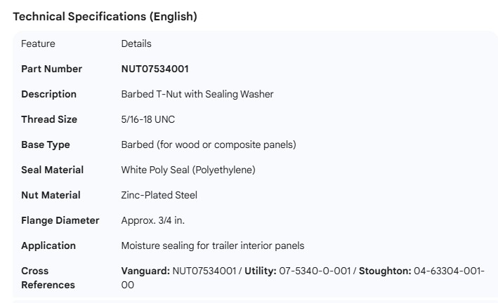 T-NUT 5/16-18 BARBED WHITE POLY SEAL